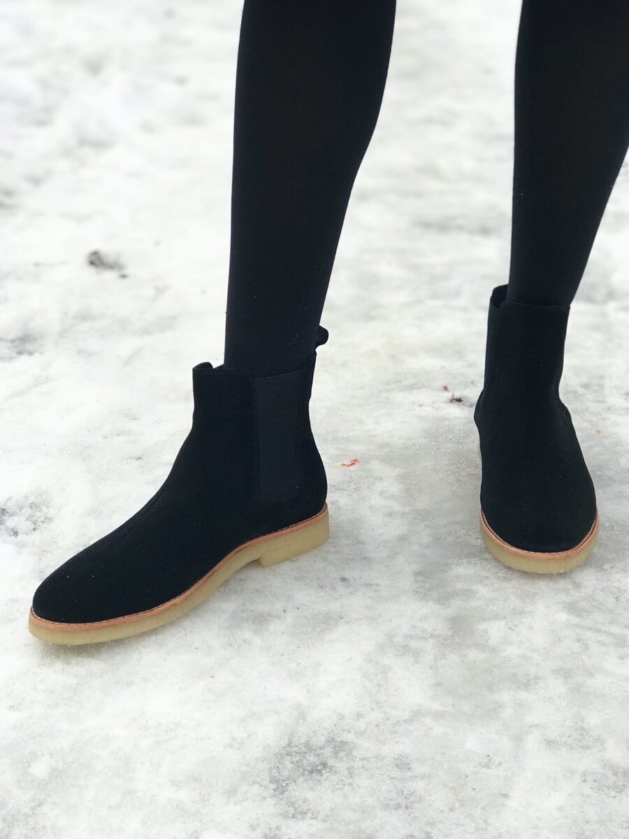 Ботинки выполнены из натуральной замши .