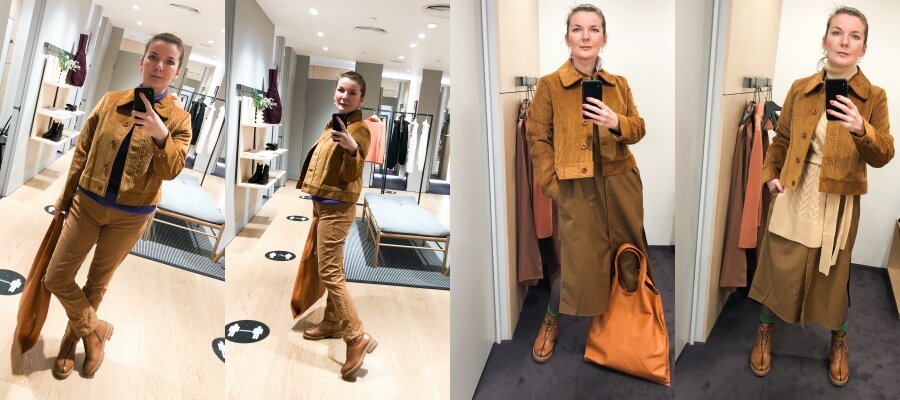 По комплектации тоже интересно. Я пришла в своих вельветовых брюках в тонкий рубчик, и нашла куртку из вельвета в таком же