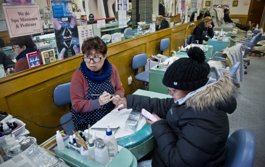 - Маникюрные салоны в Америке - это сборище либо корейский либо латиноамериканских женщин, которые в огромной толпе других клиенток на скорость делают тебе ужасное качество. Тут не поговоришь ни о детях ни о последних модных тенденциях. Здесь за полчаса в тишине тебе до мяса спиливают ногтевую пластину, вслепую на пол пальца наносят лак и в конце просят о чаевых наличными, независимо от качества выполненной работы. Это обязаловка. О санитарных мерах лучше не говорить: Ну и что, что пилочка упала- подняла с пола и дальше фигачь.