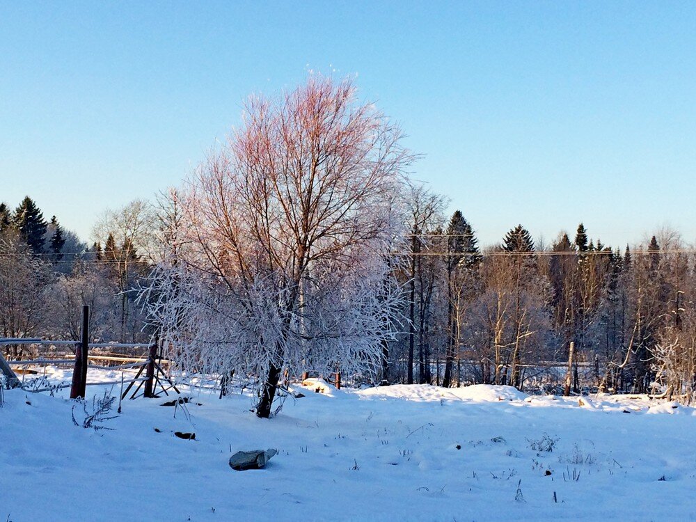 Воскресное утро, довольно морозное с непривычки, минус двенадцать на градуснике. Чай обязательно с лимончиком в термос, термос в ранец, ранец на плечи и в путь. На краю Крольчатника нас встретила громкоголосая добродушная собака. Ластилась, обнюхивала руки, будь то, ждала угощения. Проводила до пруда и вернулась. Здесь, заполонивший все и вся борщевик выше нашего роста. На каждой высохшей розетке соцветия по снежному шарику. Словно фонарные столбы сбились в кучу возле лесочка.