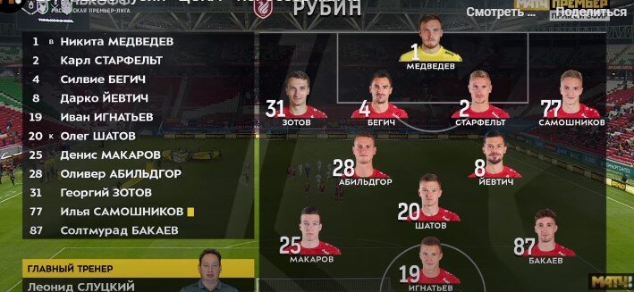 "Рубин" имел преимущество своего поля, но у "казанцев" были проблемы с составом. До сих пор не вернулся Кварацхелия, травма у Уремовича. Хотя появились Хван Им Бом и Старфельт, они еще не в форме после изоляции. Деспотивич также имеет проблемы со здоровьем, так что вышел незабивной Игнатьев. Интересно, что остался на лавке и вратарь Дюпин, которого заменил Медведев - вратаря обычно меняют, когда есть проблемы со здоровьем.