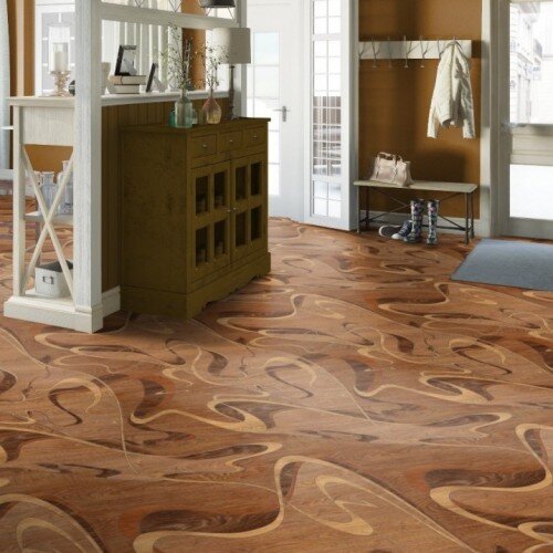 Художественный паркет воспринимается как элемент роскоши. Это самый дорогой материал из всех представленных. Его плюс заключается в том, что он изготавливается на заказ и всегда индивидуален. Его можно подобрать к любому дизайну квартиры.