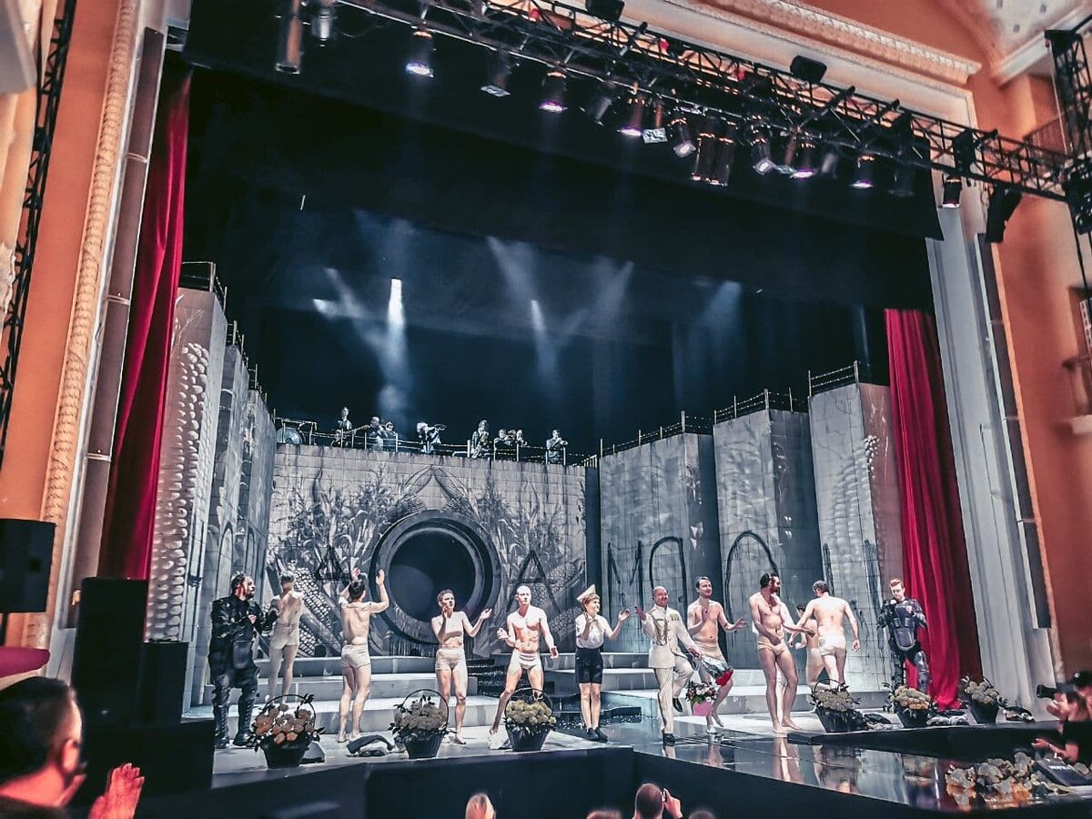 Грандиозности оформления добавляет само здание театра – Дворец на Яузе, которое подчёркивает атмосферу тоталитаризма и советскости.