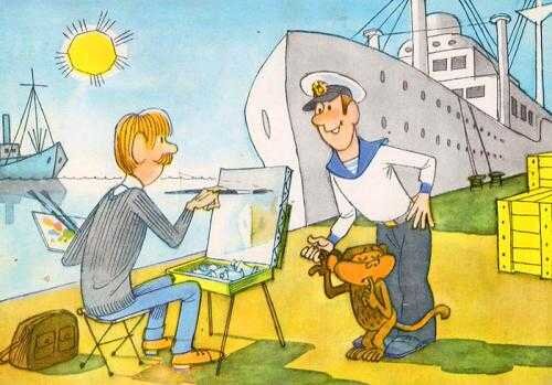— Дорогой господин товарищ, возьмите вот эту живую обезьянку. Её у нас на корабле всё время укачивает. А когда её укачивает, она всегда что-нибудь отвинчивает.