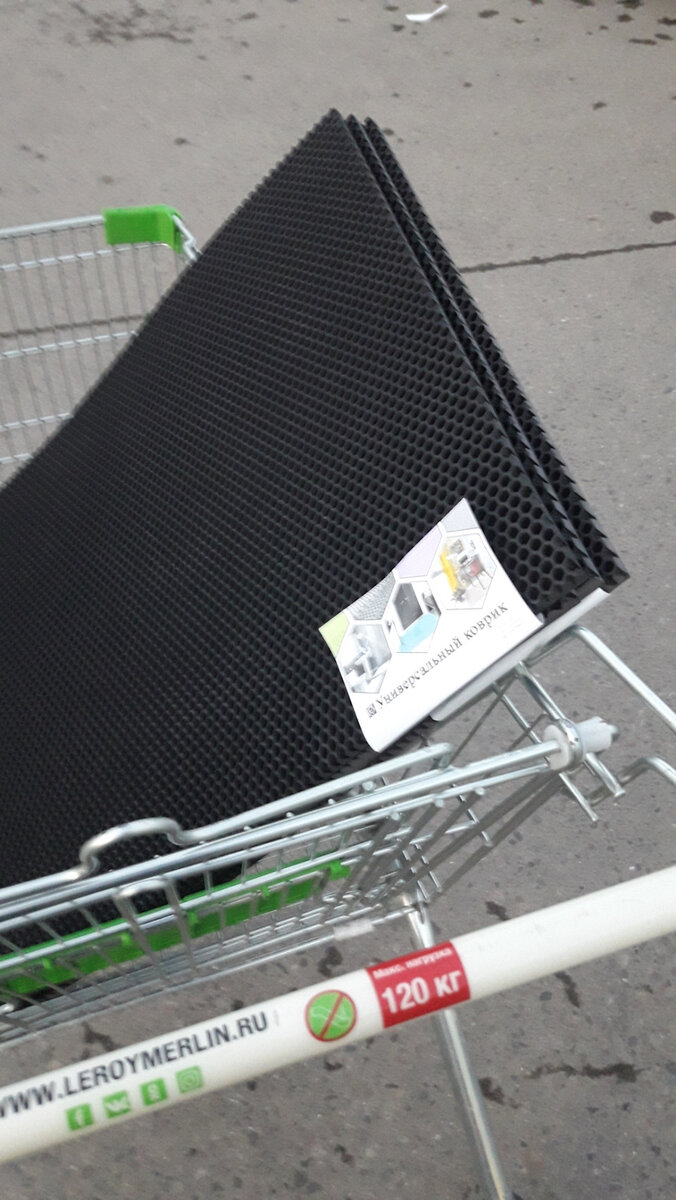 Давно хотел в машину купить Eva-коврики но все не как не мог решится, да и цена была высокая порядка 3000 руб. Как то раз зашёл в магазин Леруа мерлен и увидел коврик напоминающий то что я хотел так давно, и о чудо это и был тот самый. Цена одного листа стоит 320 руб., итого у меня вышло 1280 руб., за 4шт.