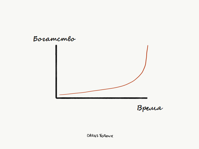 Это невероятно банальный пример, но возьмем Уоррена Баффета. Так он со временем накопил свое богатство.