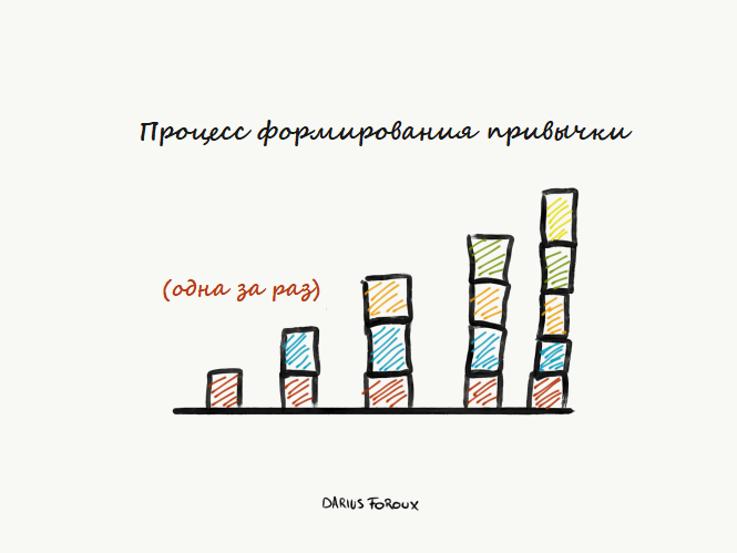Так что сосредоточьтесь на чем-то одном. Сложите одну привычку на другую, одну за другой.