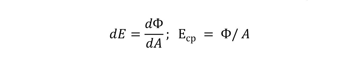 где dE и Eср — освещенность участка поверхности dA и средняя освещенность поверхности А.
