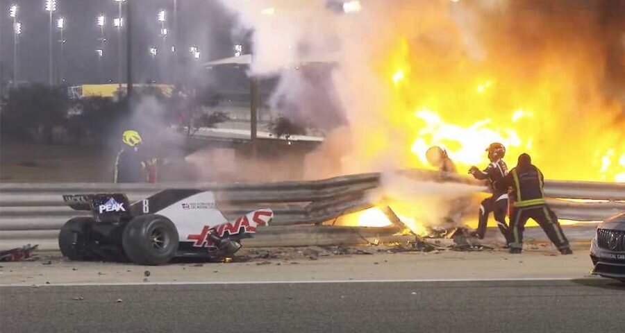 - Вчера на этапе в Бахрейне в самом начале первого круга гонки пилот Haas Ромен Грожан потерял управление над болидом и на скорости около 250 км/ч влетел в рельс безопасности, а начавшийся в это же мгновение пожар заставил сердца всех болельщиков содрогнуться...