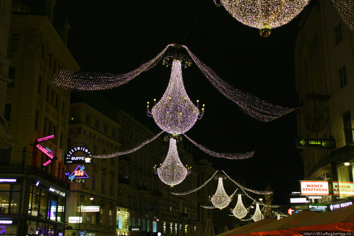 Новый Год — такой праздник, что даже если и не было соответствующего настроения в конце декабря, то по-любому "догонит и накроет" в начале января! Вот как-то всё не моглось взяться за новогодние материалы, а тут захотелось... Итак, на этот раз о новогодней столице Австрии.Если вы ещё не были под Новый год в Вене, то очень рекомендую выбрать этот город в качестве зимней сказки на текущий год. Потому что, попадая в сумерках на Грабен в это время года, испытываешь восторг! По крайней мере, со мной было именно так. И если, скажем, в Хельсинки (где тоже очень душевно проводить время в зимние праздники На Новый Год в Хельсинки) наслаждаешься ощущением настоящей скандинавской сказки, то в Вене натурально попадаешь под очарование имперской столицы. Такой, как я её увидела, Вена становится уже к концу ноября. Судя по фото разных лет, в канун зимних праздников город из года в год практически не меняет свой облик. Не знаю уж насколько это "приедается" тому, кто навещает австрийскую столицу об эту пору ежегодно, но однозначно — это шанс наверстать упущенное для того, кто приедет сюда впервые. В это время года чаще всего бесснежно, но при этом ветрено и достаточно холодно. Лично я искренне завидовала итальянкам, датчанкам и немках в симпатичных тёплых меховых шубках, поскольку сама была в пальто, поддавшись расхожему убеждению, что в Европе мех — не комильфо. Пришлось надевать по два свитера, что если не странно,то точно неудобно. Так что, если вы намерены гулять, то имейте погодный фактор в виду. А гулять точно захочется! Хорош город и в светлое время суток! Но ярче, на мой взгляд,город открывается в вечернее время. На огни столицы интересно посмотреть с колеса обозрения в Пратере. Новогодняя подсветка, правда, всего лишь добавляет световых пятен в общий облик города, но само по себе посещение этого парка развлечений станет приятным дополнением к программе пребывания, особенно с учётом того, что в зимнее время года в полной мере любоваться фонтанами и пышной растительностью не получится.В заметке о Хельсинки я упоминала, что город обильно украшен живыми хвойными деревьями. В Вене тоже уделяют внимание натуральным материалам, хотя искусственные деревья и венки тут не редкость. В отличие от северян австрийцы добавляют ярких акцентов, притом щедро: свечи, ленты,блестящие игрушки, а чаще шары. Пожалуй, скромные пастельные тона в оформлении можно увидеть лишь в храмах, как, например, ёлочки в соборе св. Стефана. Несколько необычно и оттого романтично для меня было видеть сочетание ещё не опавшей листвы и уже наряженной ели — наяву передача "эстафеты" от осени зиме:) Очень часто в качестве украшений используют шишки, цветы, засушенные части растений, коричные и даже сухофрукты! Иногда всё это сочетают одновременно — по принципу "больше — не меньше":) Меня, как человека, любящего украшать каждый сантиметр дома, не может не радовать такое разнообразие цвета и фактуры:) А это уличная витрина моего любимого цветочного магазина у собора св. Стефана, который я часто упоминаю в заметках о Вене (Добавить красок в романтический вечер). И в канун Рождества он тоже порадовал! Вообще, об эту пору на улицах появляется множество лавок, где можно приобрести любую новогоднюю атрибутику. Меня очаровали гирлянды из цитрусовых и ароматных растений. А корица смотрится отлично и в с