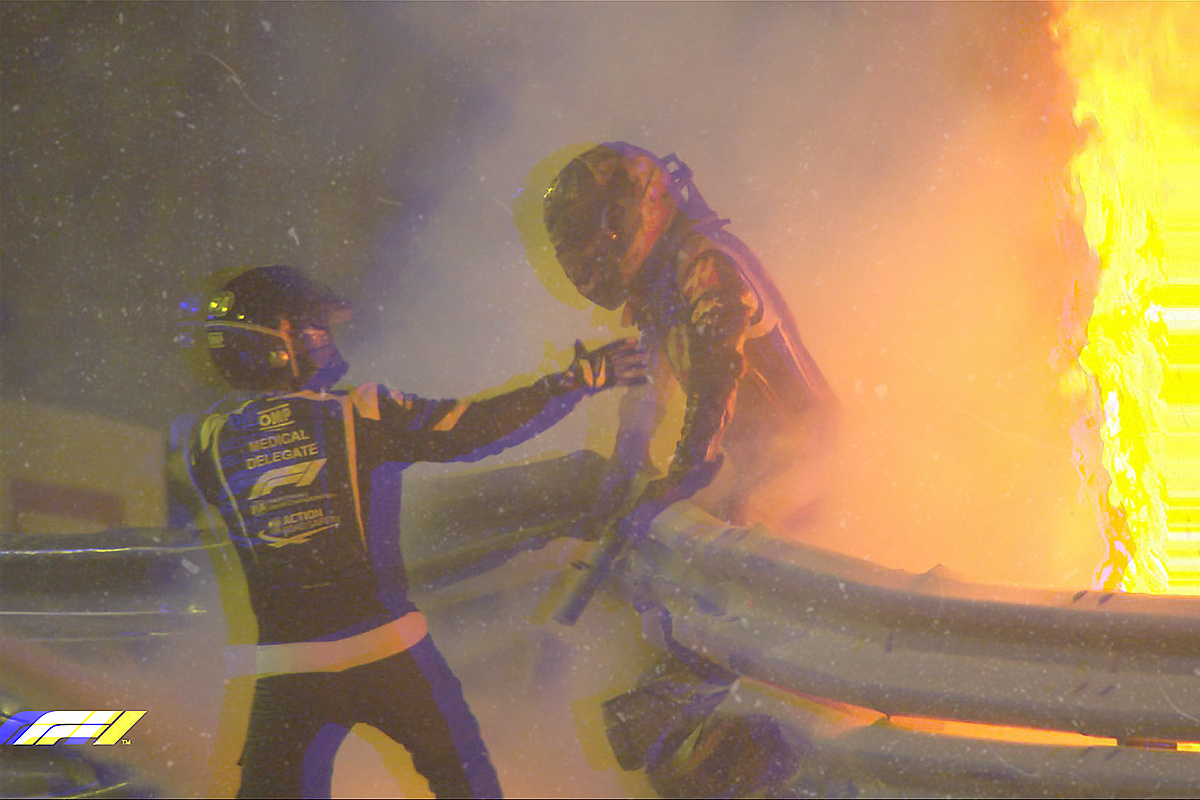 • Важнейшую роль сыграли шлем и огнеупорный костюм: в пламени гонщика даже не было видно, но в таких условиях он смог отстегнуться и покинуть болид, в иных условиях человек сгорел бы заживо.
