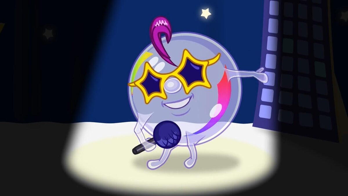 Бац! Огромный Мыльный Пузырь пробил потолок здания, в котором он выступал со своей хвастливой песней. Он продолжил петь: