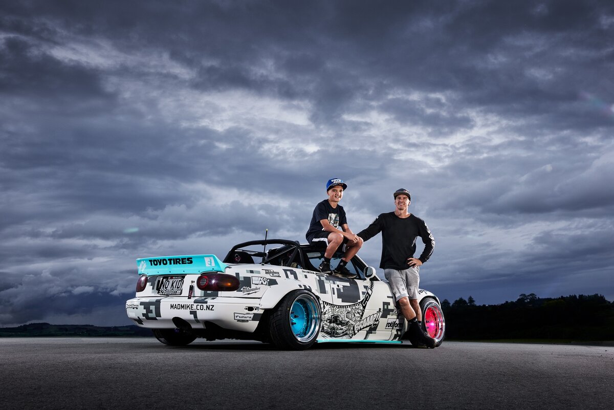 Сын Мэд Майка Линкольн, самый молодой амбассадор Toyo Tires, представил свой новый дрифт-кар #N0KIDN. Эту машину он построил сам вместе c Мэд Майком на базе роторной Mazda MX5