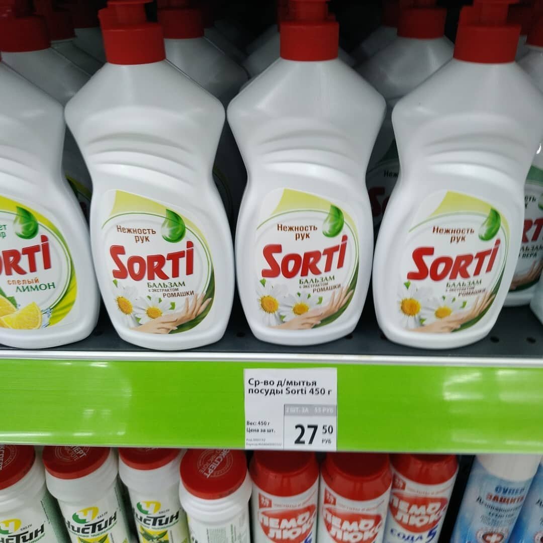 - Моющее средство "Sorti" всего за 27 рублей 50 копеек