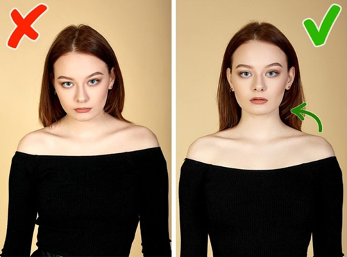 Скрещивание рук – закрытая поза, которая говорит о том, что человек зажат. Вторая ошибка – наклон головы без наклона плеча. Это неестественная поза, которая делает снимок тяжелым и не эстетичным.