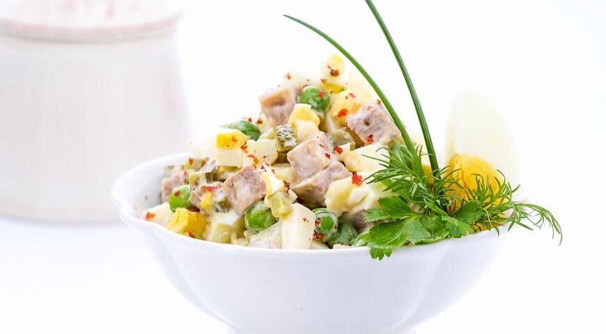Оливье с курицей — одна из самых любимых разновидностей этого знаменитого советско-российского праздничного салата, обладающая, на наш взгляд, более нежным и деликатным вкусом. Особенно если заправить его майонезом домашнего «производства»! Кстати, многие предпочитают в этом случае заменять репчатый лук зеленым, что, опять же, работает на более мягкий вкус блюда. Попробуйте оба варианта и