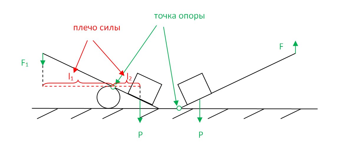 Давайте посмотри на картинку, Вы видите два варианта рычага (есть еще, но мы рассмотрим эти), отличающиеся расположением точки опоры.
