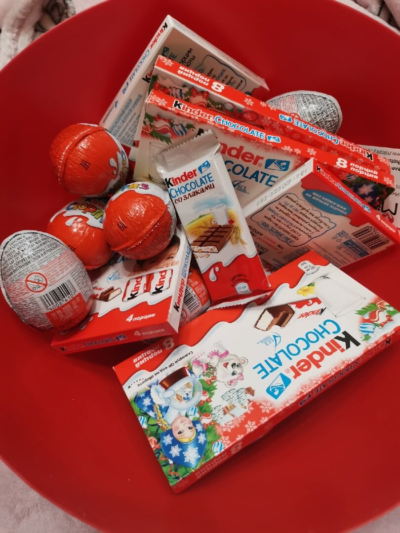Это в принципе беспроигрышный вариант, если у нас в окружении есть сладкоежка. Выбираем вкусные шоколадки (думаю, не нужно объяснять, к каким стоит присмотреться), покупаем разные-разные вкусности и собираем их в один большой подарок. Причем я держу пари, что "Киндерам" будут рады не только дети, но и многие взрослые, поэтому можно подумать и о таком варианте. Но я предлагаю несколько его усовершенствовать.