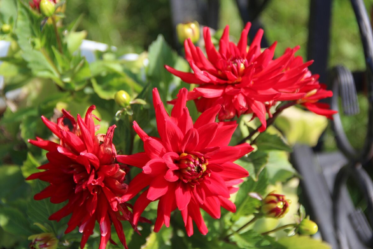 Они бывают высокими, выше человеческого роста, и низкими. Их можно выращивать как одиночные, акцентные растения, так и в цветниках. Для одиночных посадок больше подходят растения, выросшие из клубней. Каждый клубень даёт одно крупное растение, высота которого всегда указана на упаковке и может варьироваться от 40 до 180 см. Вам нужно для этой цели выбирать те, что повыше. Высокорослые георгины