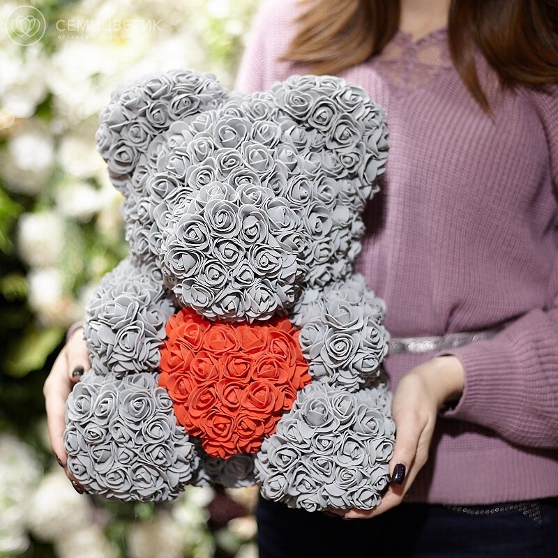 В последнее время на витринах флористических салонов и в магазинах с подарками появился диковинный зверек — очаровательный медведь, выполненный из множества маленьких розочек. Мишка из роз — это новинка, которая сразу же полюбилась и завоевала кучу поклонников. Расскажем про косолапого побольше.