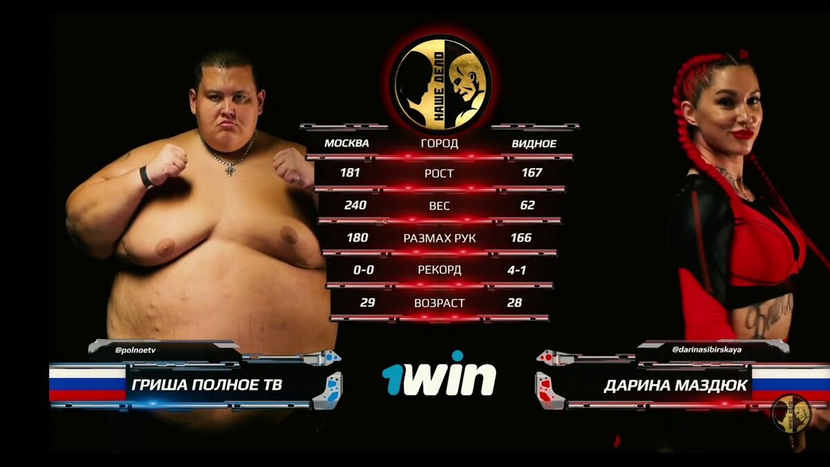 Несколько дней назад случился главный фрик-бой в истории. Гриша полное тв подрался с Дариной Маздюк. Это абсолютный позор, который теперь не отмыть ничем. Люди, которые создавали данный бой, не должны иметь права даже говорить об этом прекрасном спорте. Они продались за деньги и устроили из благородных боёв настоящее посмешище, цирк уродов. Во времена, когда многие оскорбляют настоящих бойцов, одни устраивают такие бои, а другие, словно стадо умственно отсталых, это смотрят.
