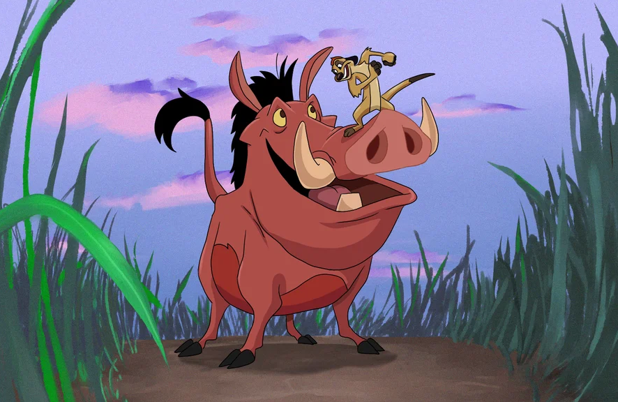 Наверное все знают этих двух забавных друзей - Тимона и Пумбу, которые являются лучшими друзьями Симбы. Ведь это именно они дали ему это прозвище "Король Лев".