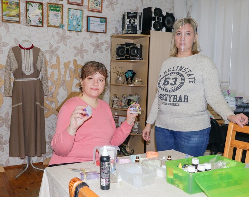 Зараз, напярэдадні навагодніх і калядных святаў, Алена разам са сваім настаўнікам пераключылі ўвагу на мылаварэнне: закупілі формачкі для мыла ў выглядзе сняжынак, араматызатары, і вось ужо першыя сувенірныя вырабы чакаюць свайго пакупніка.