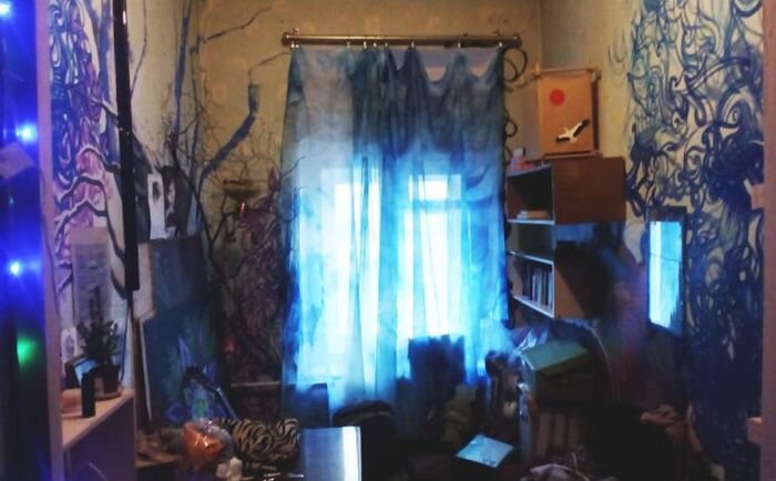 Видимо в этой квартире живёт вандал-пацифист - он не хочет портить стены других людей, но надо же всё-таки что-то разрисовывать!🎨