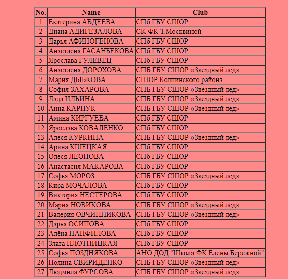 - Полина Свиреденко (сестра фигуриста Леонида Свиреденко), в этом сезоне дважды стала пятой на этапах Кубка России. В прошлом сезоне стала 3 на первенстве СПб.