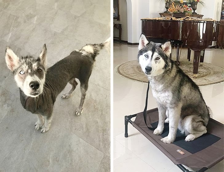 Луну нашли около 8 месяцев назад, и в ней было тяжело признать породистую сибирскую хаски: она была очень худой, а из-за чесотки на ней почти не осталось шерсти. Но благодаря любви и заботе нового владельца эта собака вновь стала пушистой и счастливой.