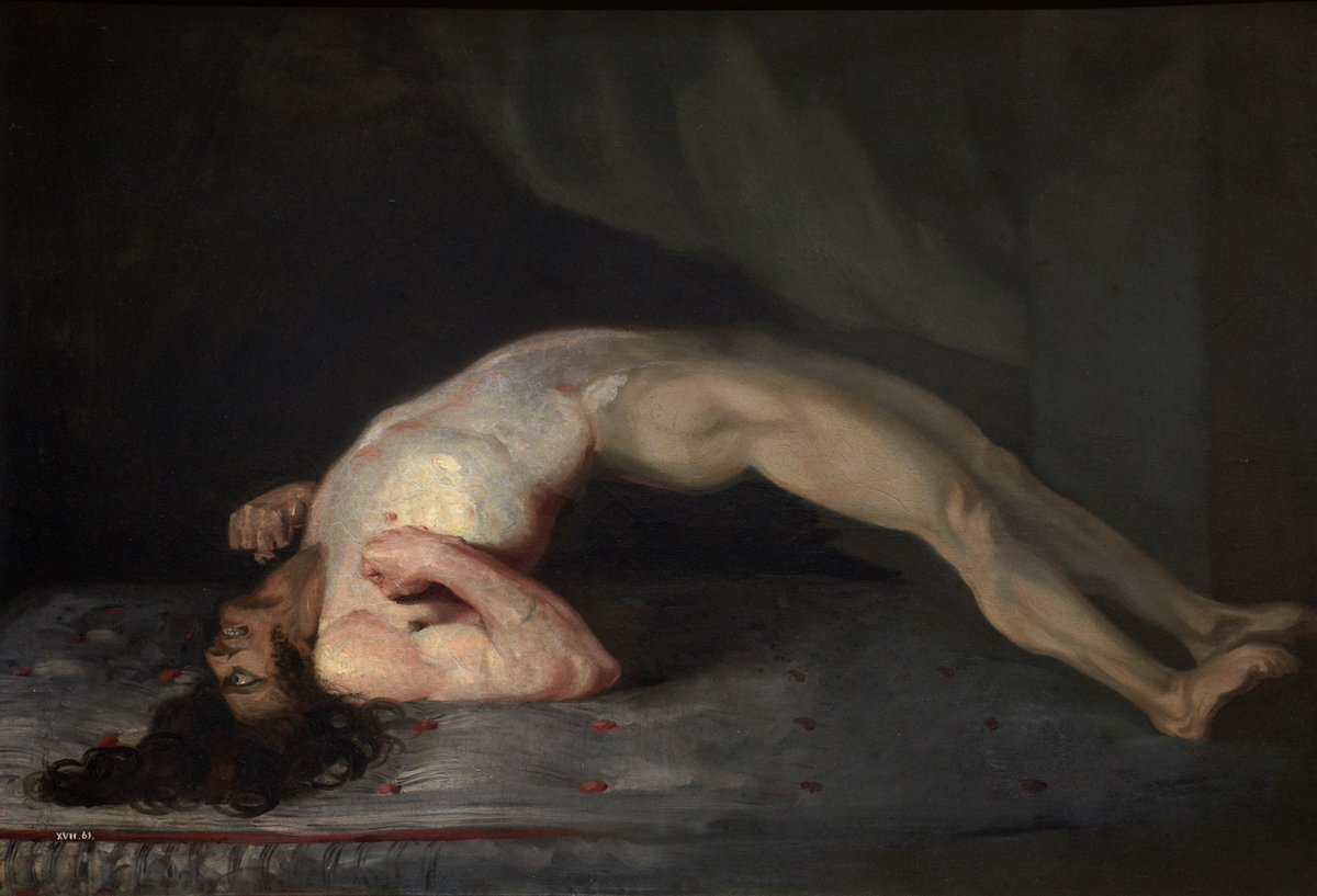 Если не начать лечение вовремя, то возникают судороги мимических мышц, вследствие чего у больного появляется сардоническая улыбка лицо выражает одновременно улыбку и плач. Далее развивается клиническая картина с вовлечением мускулатуры спины и конечностей. Возникает затруднение глотания и болезненная ригидность (напряжение) мышц затылка. Ригидность распространяется в нисходящем порядке, захватывая мышцы шеи, спины, живота и конечностей. Появляется напряжение мышц конечностей, живота, который становится твёрдым как доска. Иногда наступает полная скованность туловища и конечностей, за исключением кистей и стоп. В общем, продолжающиеся и усиливающиеся судороги сопровождаются причудливыми позами из-за напряжения той или иной группы мышц. Бывает, что Больной выгибается на постели в дугообразное положение, опираясь только пятками и затылком. При этом больные скрежещут зубами, кричат и стонут от боли. Спазмы мышц приводят к затруднению или полному прекращению функций дыхания, глотания, дефекации и мочеиспускания, расстройству кровообращения и развитию застойных явлений во внутренних органах, и в конечном счете к смерти.