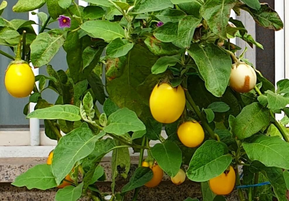 Скорее всего, в Корее считают это растение декоративным, а плоды несъедобными. Может быть, мы и ошибаемся, но, похоже, такой сорт баклажанов корейцы не едят. По крайней мере, привычные нам "синенькие" — как называют обычные баклажаны во многих регионах России — в Корее часто подают на стол в виде панчана, а вот такие жёлтенькие мы пока не