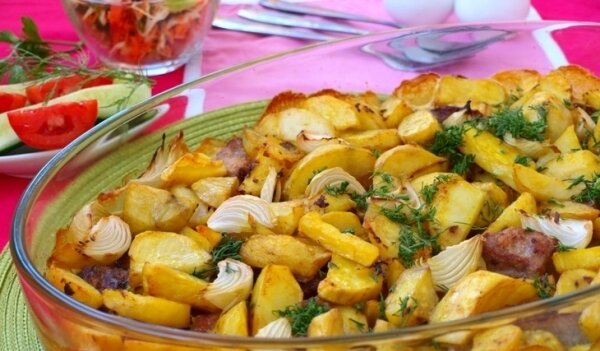 Предлагаю вкусное второе блюдо из свинины с картофелем и луком запечённое в духовке. Мясо и картофель предварительно обжариваются на сковороде, а затем заливаются сливками и доводятся до готовности в духовке. Блюдо отлично подойдёт на завтрак, а также для праздничного стола. К нему хорошо подать свежие овощи или салат. Благодаря добавлению в картофель куркумы и паприки