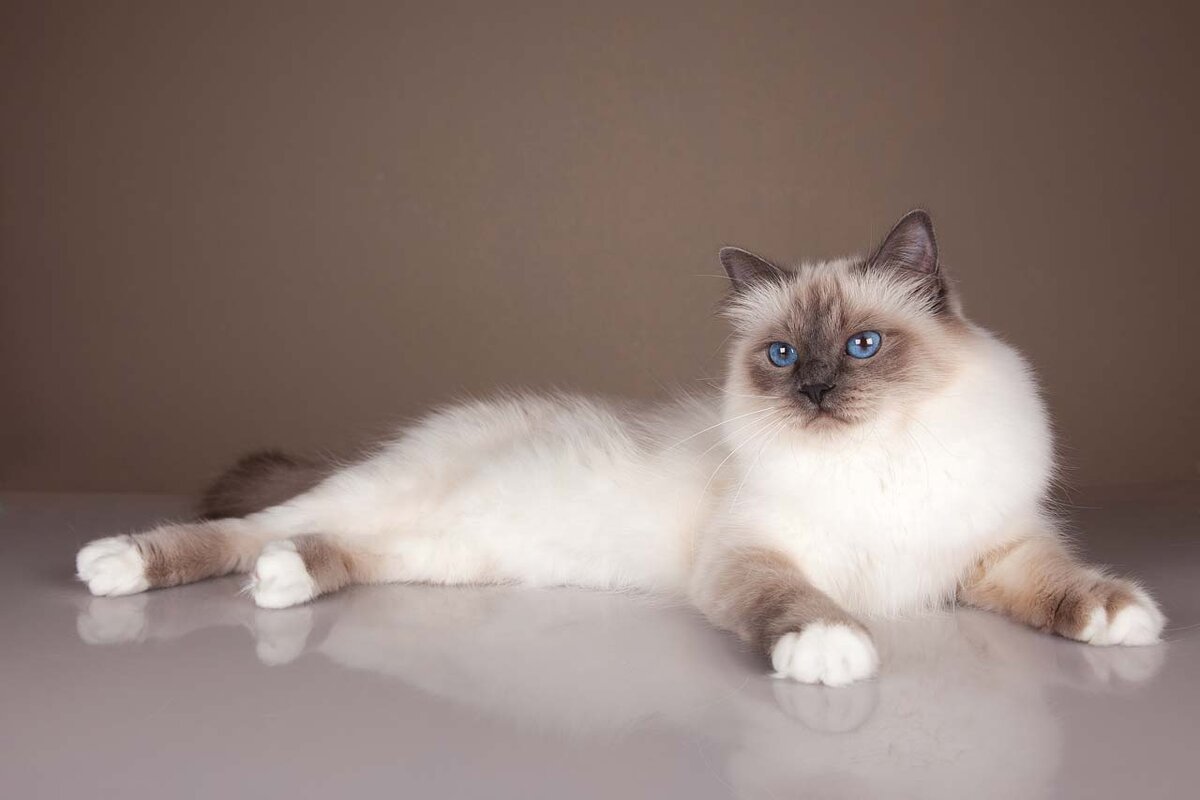 Бирманская порода появилась в результате скрещивания сиамской и персидской. Особенностью бирманской кошки являются белые лапы, их часто называют "носочками". Белый цвет не должен распространяться на ногу. Равномерность и симметрия носочков очень важны. Лучше всего чтобы белый цвет был распределен одинаково на всех лапах.