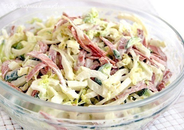 1. Капусту шинкуем (у нас пекинская, с ней вкуснее)