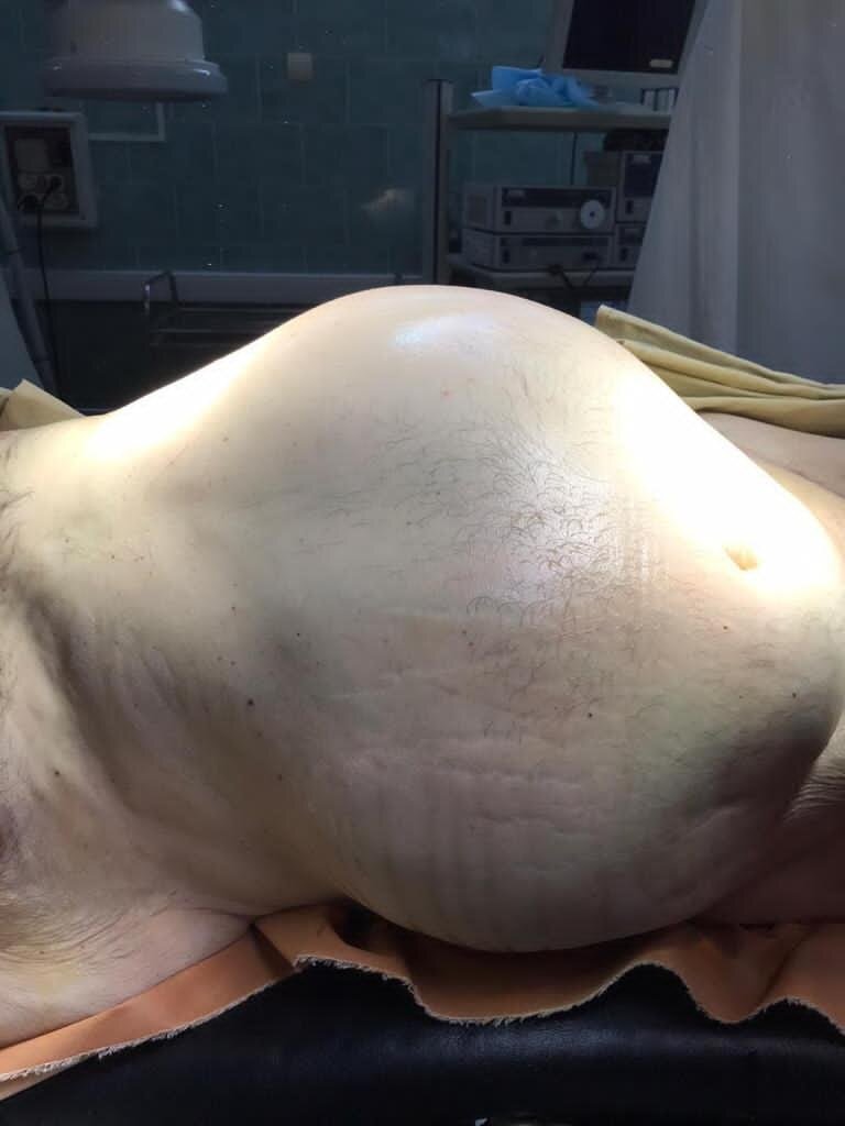 К медикам 64-летний мужчина обратился с жалобой на тянущую боль в области поясницы. Кроме болевого синдрома, у пациента наблюдалась асимметрия живота, он жаловался на проблемы с кишечником и мочеиспусканием. Сам мужчина считал себя просто обладателем