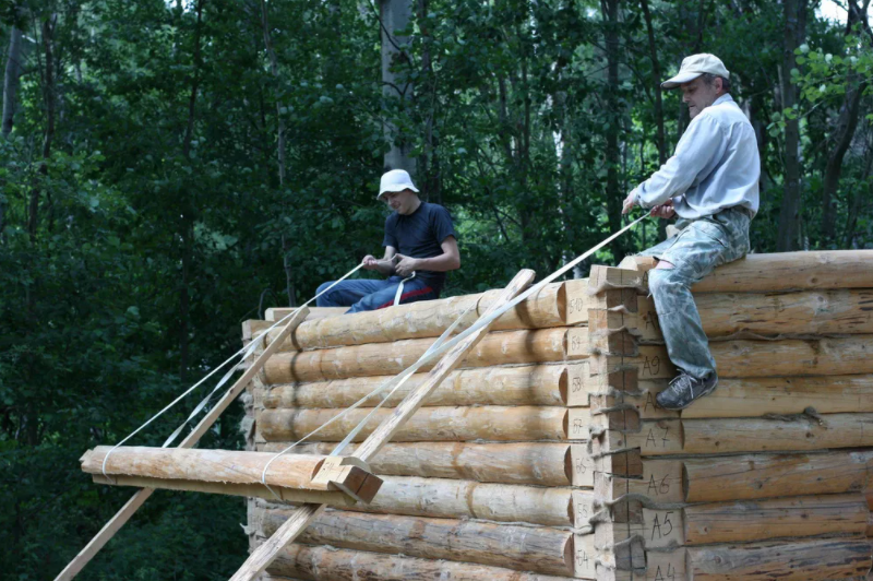 Часто бывает так, что у заказчика нет денег на кран, чтобы подавать бревна, поэтому приходиться все делать в ручную. Ворочать бревна - работа не из легких, но если знать некоторые секреты, то можно обойтись малыми потерями. Так что, кто только начинает заниматься такой работой, записывайте: