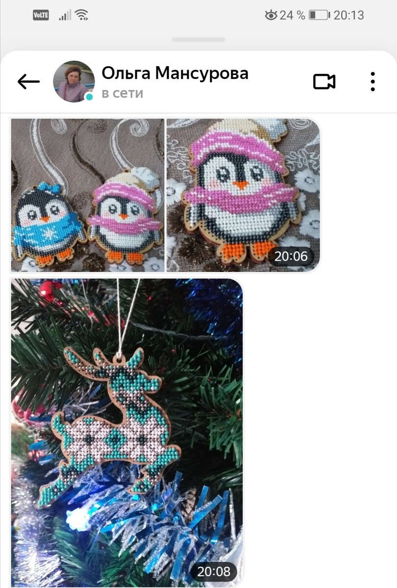 Одна из читательниц моего канала, прислала мне вышитые украшения которыми можно украсить новогоднюю красавицу.