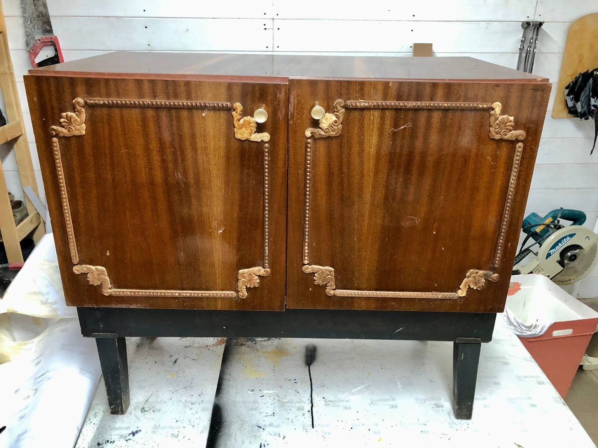 Теперь, собственно к процессу вылупления из конфетки: отодрала старые ноги со сломанным основанием, старый декор, удалила гвозди, выкрутила ручки.