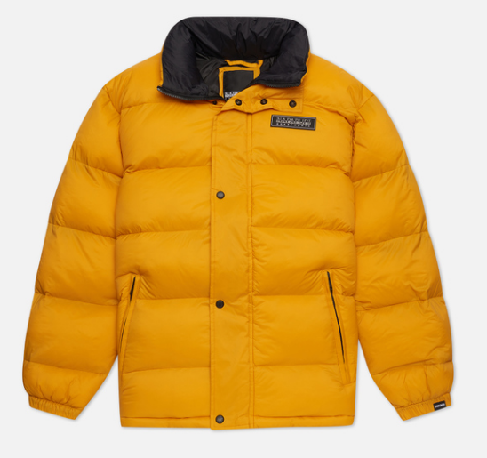 Данный пуховик набит полиэстером. Пуховик позволит Вам выделиться из толпы, так как на спине есть большая надпись бренда. Также Вы сможете носить этот пуховик без шарфа, так как на нем уже