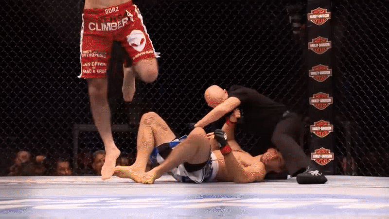Жесточайший левый хук в челюсь и после отличная работа локтем в партере. И победа в кармане.