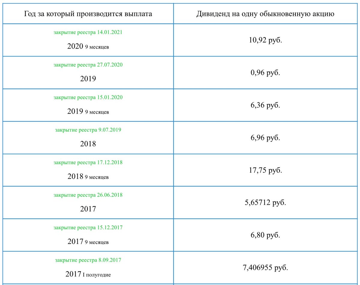 Вся дивидендная история НКХП