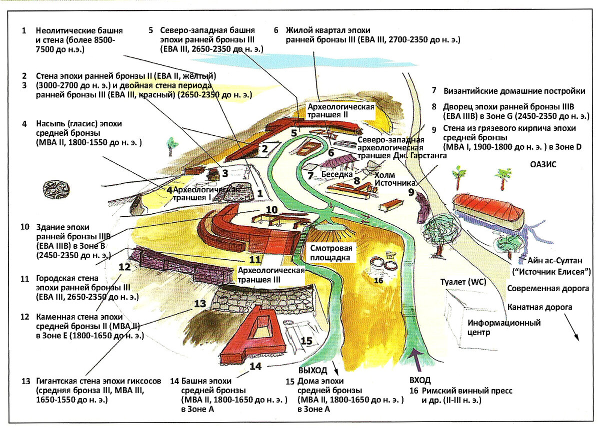 Примерно в 1,5 км от центра Иерихона, который расположен на западном берегу р. Иордан, находится холм под названием Тель-ас-Султан. В настоящее время там устроен музей под открытым небом. А по-простому – демонстрация раскопок. Площадь объекта – 3,4 Га.