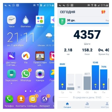 А ели открыть ее, то можно увидеть и количество шагов и сожженные калории и пройденный километраж.
