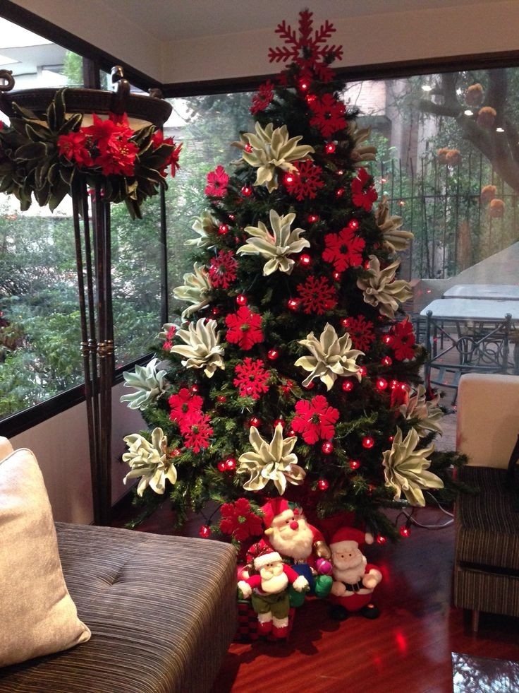 Романтичный, немного даже девчачий вариант украшения елки — нежными цветами.