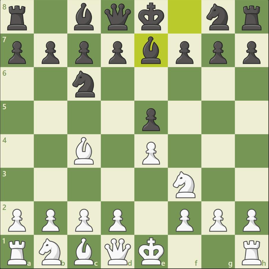1. e4 e5 2. Кf3 Кc6 3. Сc4 Сe7.