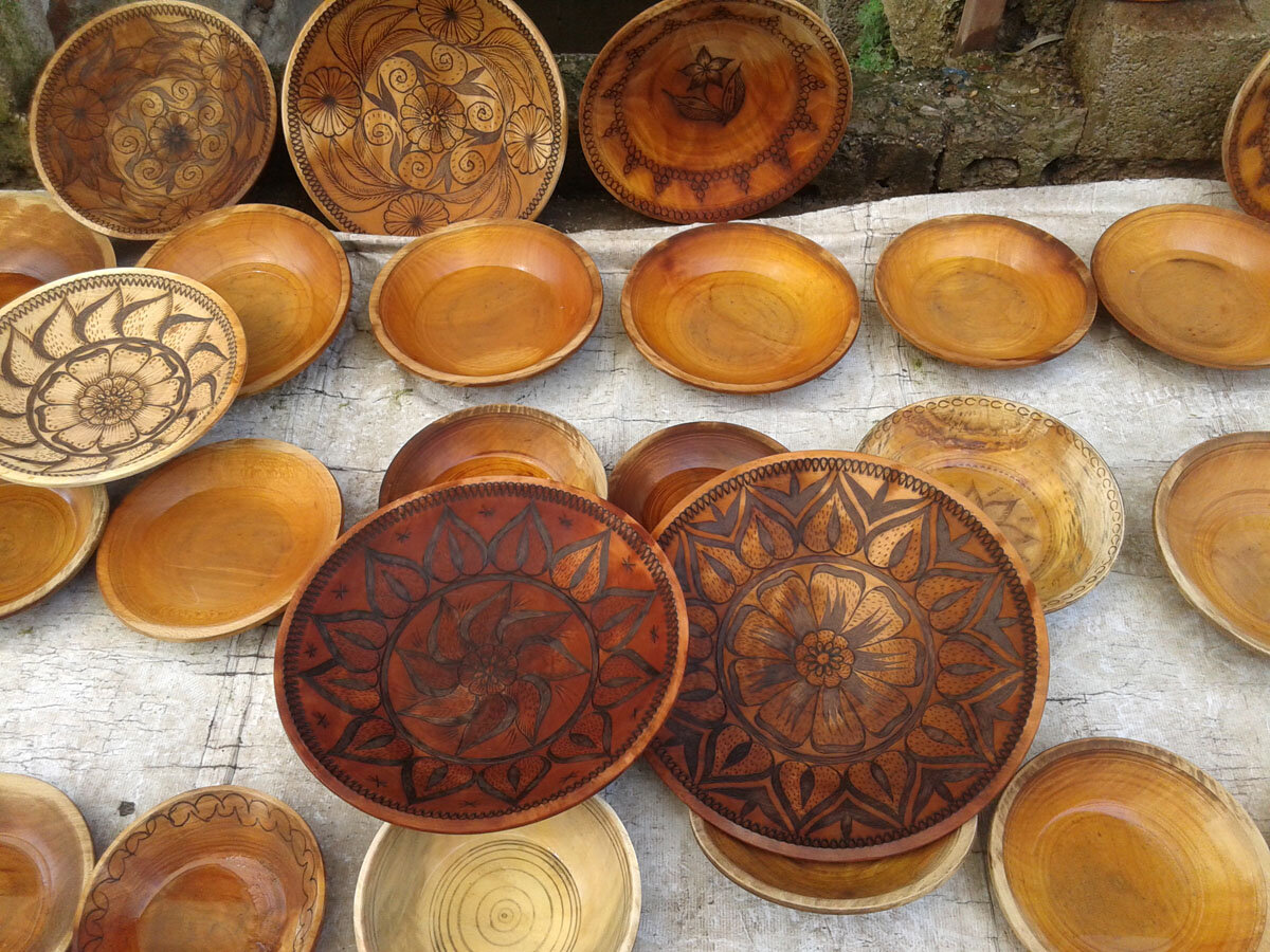 Традиционно эти тарелки вырезают вручную или на специальных станках из двух видов древесины – грецкого ореха, из которого посуда получается светлых тонов, и чинара, тарелки из которого красноватого оттенка.
