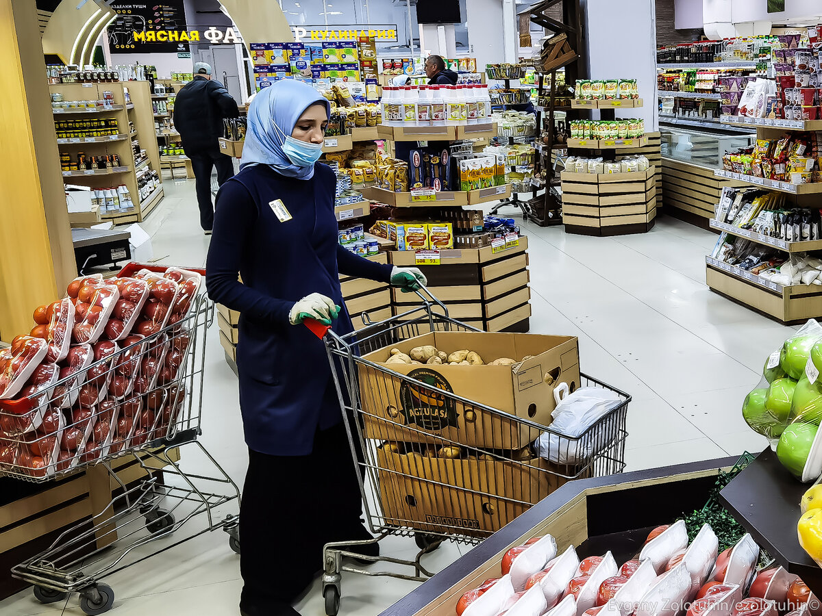 В Дагестане всего несколько полноценных супермаркетов, в основном продукты местные покупают в небольших продуктовых гастрономах "у дома", которые заменяют им привычные для остальных регионов "Магниты" и "Пятерочки". Известнее сетевые магазины почему-то в Дагестан не заходят, но есть парочка местных супермаркетов, которые очень удивляют своим ассортиментом и современностью. Американская кола, итальянские макароны и немецкий шоколад. Все это и даже больше можно найти в дагестанских супермаркетах. Для начала покажу типичный дагестанский "супермаркет. Все они называются в Дагестане почему-то на советский манер гастрономами и выглядят примерно одинаково. Внутри достаточно грустный интерьер и ассортимент. Очень часто оплатить можно только наличкой либо переводом на карту. В общем, будто не 2020 год, а какой-нибудь 2002, или даже раньше. И таких магазинчиков бесчисленное количество, на окраинах, в центре города, вообще везде. Но, как оказалось, есть в Дагестане и парочка других супермаркетов
