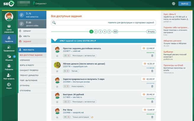 Люди выкладывают там простые задания, вы их выполняете и получаете деньги. Эти задания, как правило, связаны с