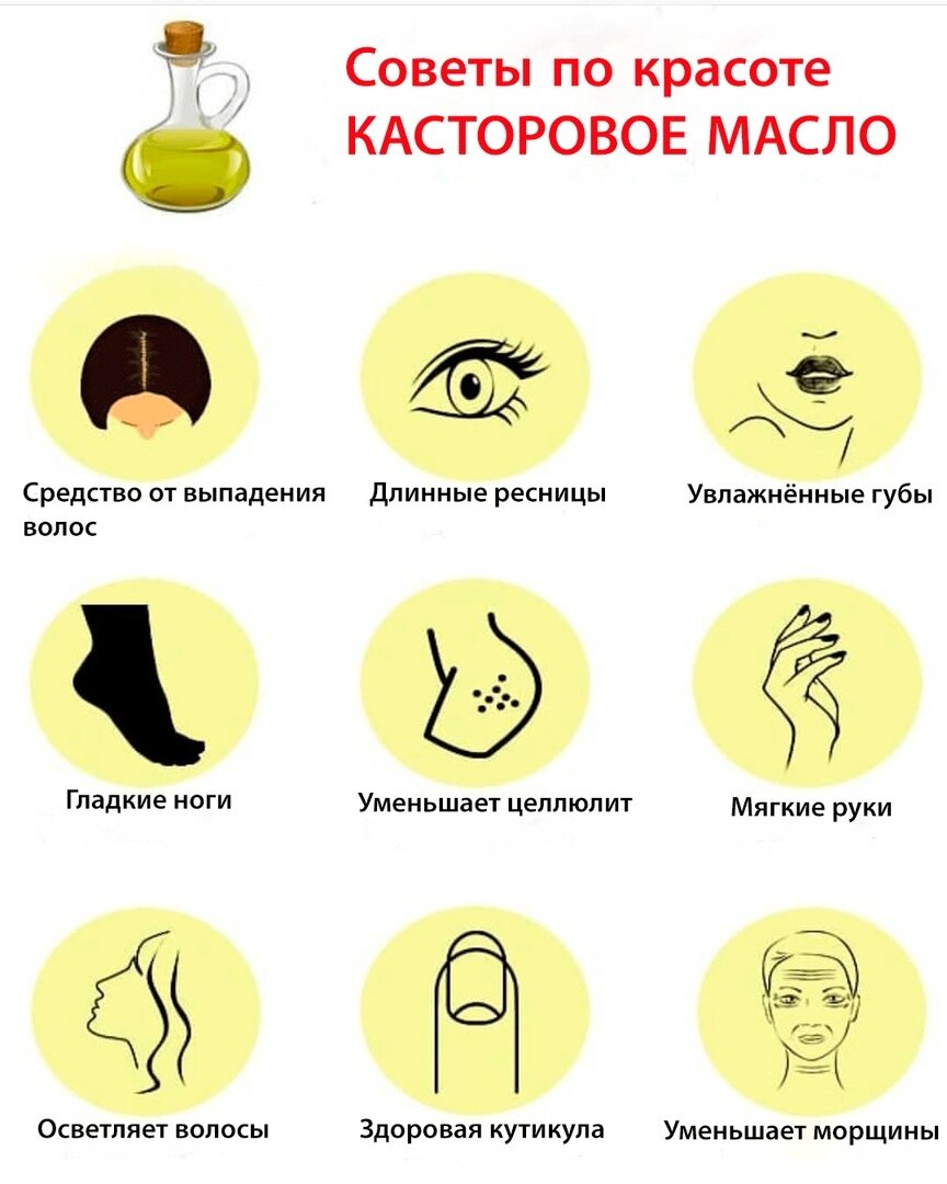 - касторовое масло используют для укрепления и роста волос, ресниц и бровей;